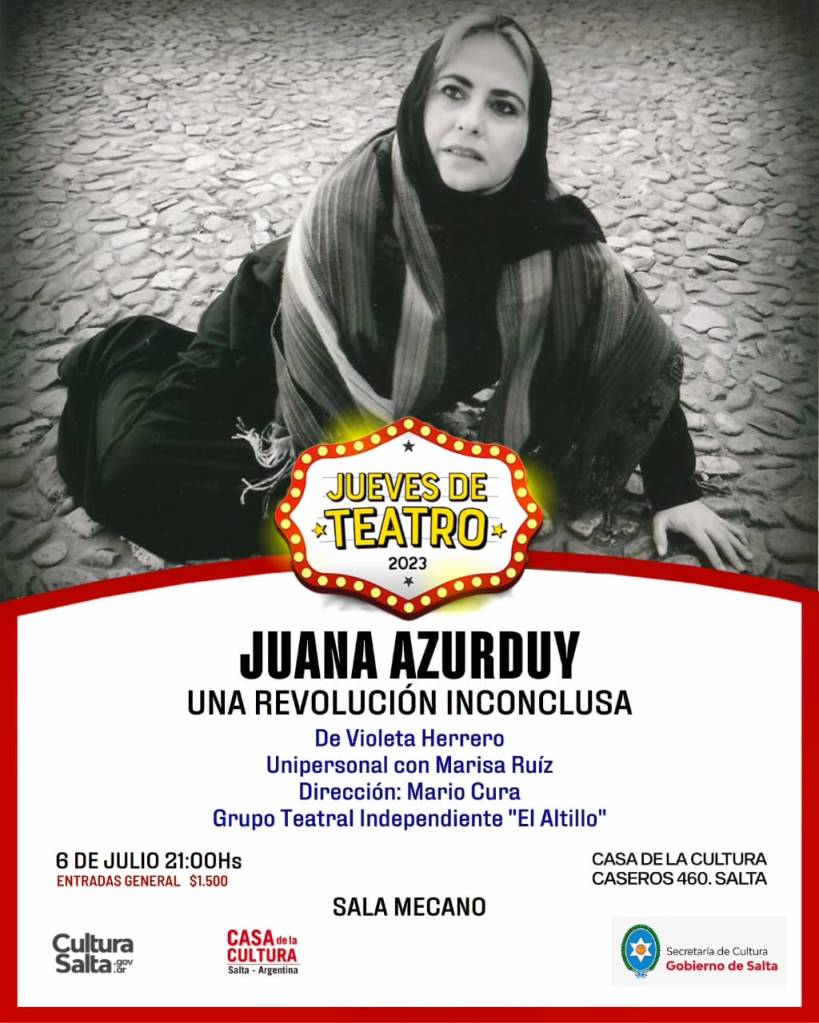 Tenemos una cita este jueves, 6 de julio a las 9 de la noche en ocasión de una nueva puesta en escena de mi obra Juana Azurduy, una revolución inconclusa; un unipersonal poético y conmovedor que relata la vejez de la heroína.