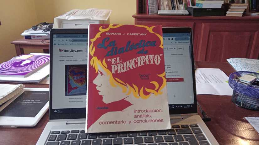 Por esas cosas de la vida y de la muerte, en 2013 heredé un libro llamado La dialéctica de “El Principito”, de Edward J. Capestany. Enamorada de El Principito de Saint-Exupéry desde mis 8, casi 9 años, coqueteé con el libro heredado durante una década, pero nunca pude sentarme a leerlo y esa larga espera activó mi interés, pensando que sumergirme en él me haría inmensamente feliz. Lo leí, por fin, en la última semana de 2023. Y contra lo que soñaba, noté que no me resultaba fácil y, de hecho, cada tanto tuve que entrar en el texto de 1967 (el cual, por eso del amor a ciertas lecturas, conservo en mi biblioteca, sano y bueno). Cuando terminé la Dialéctica, releí el de Saint-Exupéry.
