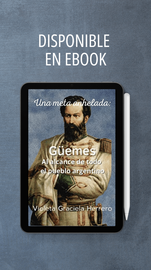 Los invito a leer mi último ensayo histórico, Una meta anhelada: Güemes al alcance de todo el pueblo argentino, publicada por Editorial Nueva Generación, Buenos Aires, 2021. En esta obra construyo una épica del líder salteño que se asienta en sus perfiles de acción, su carácter y sus virtudes. Haciendo uso de mis conocimientos sobre inteligencia emocional, amplío el panorama interdisciplinar e intento facilitar una imagen más humana del prócer.