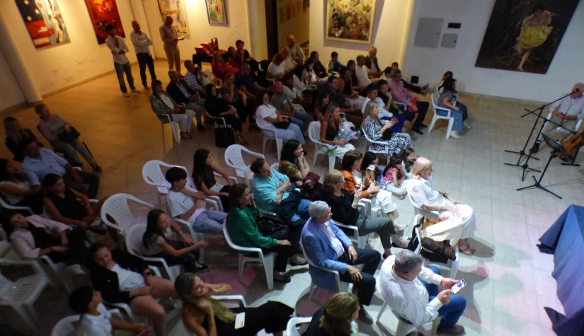 Dos reconocidas figuras de la música salteña cantaron después un par de bellísimos temas: Julio César Ulivarri (en la foto, de pie). de quien tengo la dicha de ser amiga y con quien somos coautores de varias canciones; y Jorge González Ferreyra (en la foto, sentado), colega e hijo de un querido amigo ya desaparecido. Los temas seleccionados (o así lo creo porque amo la música) pusieron en el ambiente (el salón estaba lleno de entusiastas personas) la espiritualidad necesaria para un momento que iba más allá de la historia y de la escritura.