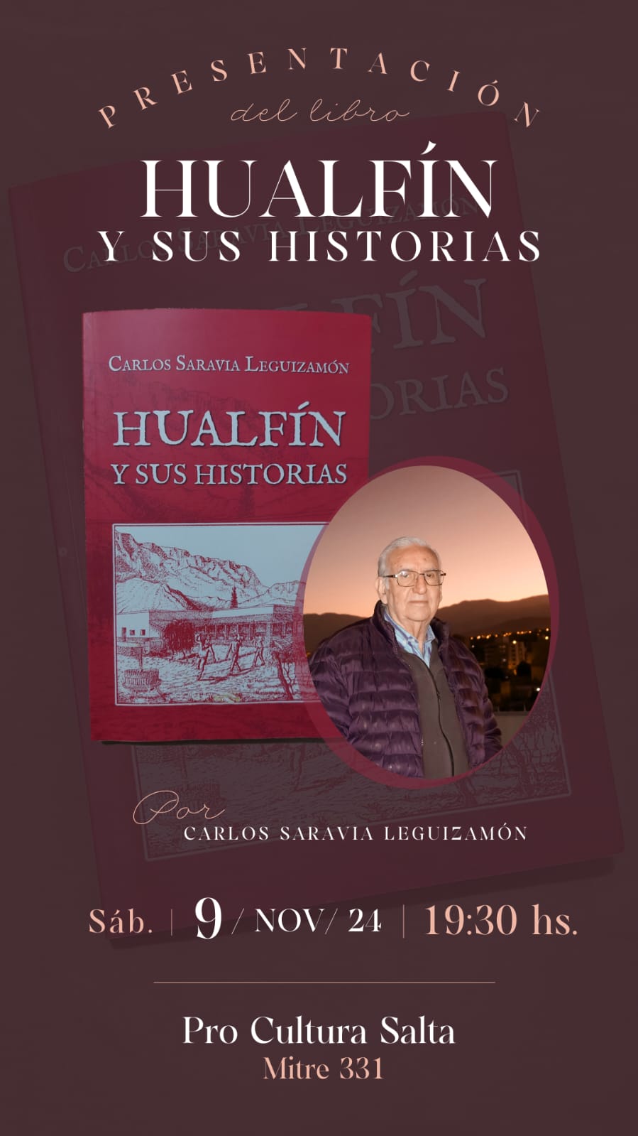 Hola, amigos queridos. Hoy quiero relatarles una pequeña historia, la de una presentación memorable ocurrida el 9 de noviembre de 2024 (el sábado pasado), en Mitre 331 de la Ciudad de Salta. El lugar pertenece a Pro Cultura Salta, institución que promueve la cultura en mi provincia desde 1976. La protagonista de la tarde fue la opera prima de Carlos Saravia Leguizamón, Hualfín y sus historias.